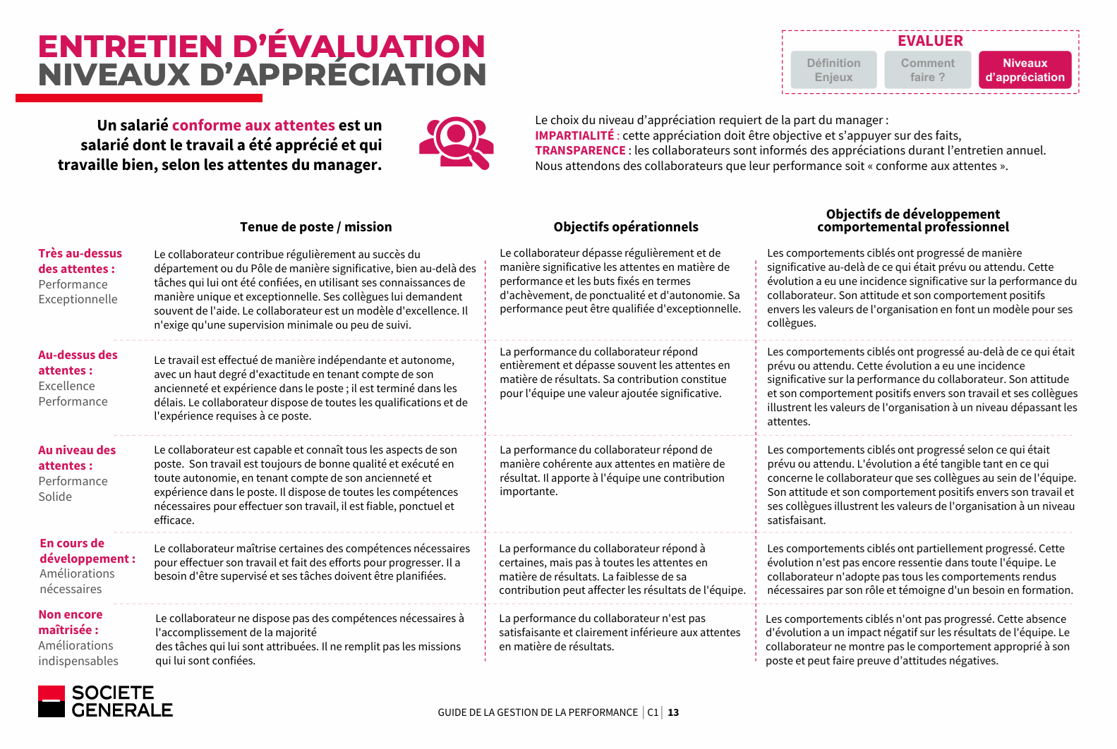 Entretien d'évaluation - les niveaux d'appréciations
