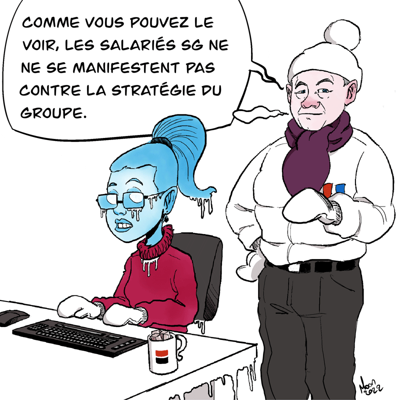 Vous n’avez pas aimé la saison précédente ? Celle du froid dans les locaux. Vous allez détester celle qui arrive ! Ce pourrait être le pitch d'une mauvaise série B. Malheureusement la réalité risque de dépasser la fiction. Sous couvert d’appliquer les consignes gouvernementales, la direction a coupé le chauffage l’hiver … et a déjà coupé l’aération et la climatisation pour cet été. Bilan, alors qu’il fait entre 12 et 15° degrés dehors, on monte à plus de 25 degrés dans certains locaux des Tours SG (voire 27° relevés pendant toute la négociation égalité professionnelle – cf ci-dessous). La direction avait appliqué avec beaucoup de zèle le plan énergétique du gouvernement ... dont l'efficacité ne s'est fait sentir qu'en terme de com. La direction y a vu un bon moyen de faire des petites économies supplémentaires sur le chauffage et la clim. Ils ont même misé sur la lassitude des collègues pour les inciter à rester en télétravail et avaient envisagé de fermer les tours historiques pour ne laisser que Basalte ouverte. Bilan : en hiver, si vous pouviez ajouter un pull supplémentaire sous la doudoune sponsorisée par Bruno Lemaire, cet été, la mode devrait être plus proche de Marlène Chiappa dans playboy. L'hiver a vu fleurir des chauffages d'appoint dans différents secteurs, mettant par terre les pseudo économies du plan fumeux. On notera au passage que si certains locaux dépassent déjà les 25,5 degrés (et seulement 15 dehors), la salle du conseil d’administration reste elle bien aérée et à 22 degrés. A croire que nos huiles ne supportent pas la chaleur et que le service VIP leur permet, comme toujours, de bien se protéger des désagréments qu'ils infligent au petit peuple! La CGT va proposer une expertise de tous ces points. Cette adresse e-mail est protégée contre les robots spammeurs. Vous devez activer le JavaScript pour la visualiser.